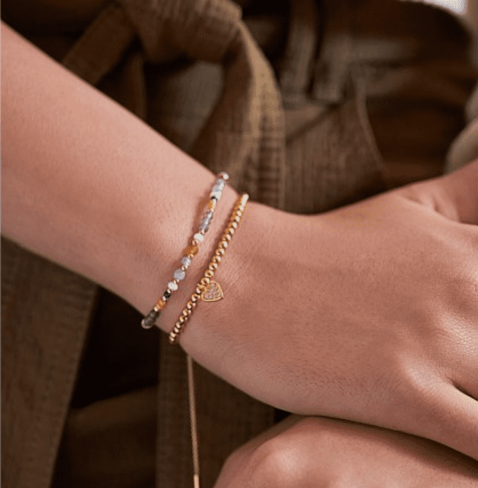 Our Mini Amelia Gemstone Bracelet features an array of mini beads in varying shades of Pink Opal, Aquamarine, Tourmaline and Amazonite, said to enhance love and joy.