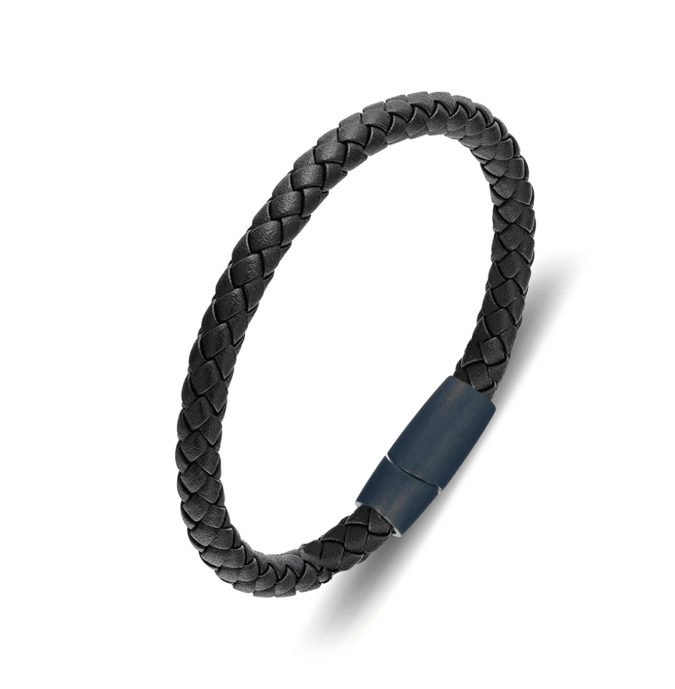 Blaze men’s black leather bangle with brush matte finish magnetic clasp
