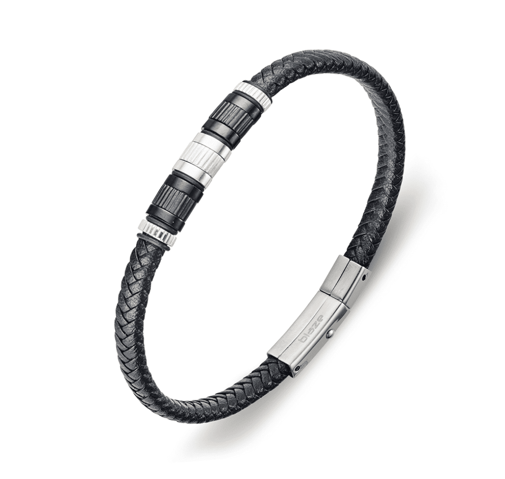 Blaze stainless steel 6mm leather bracelet with steel bead detail