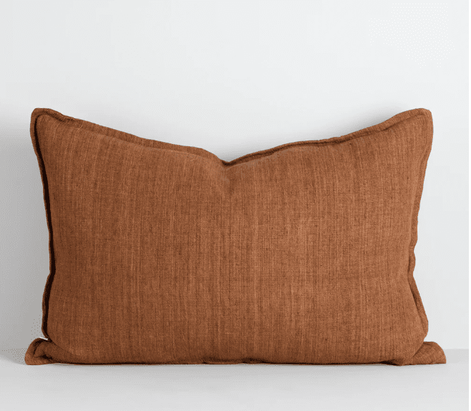 Raw texture is celebrated in stunning natural tones. Handwoven in 100% linen, the Arcadia features a 1cm flange edge, enhancing strength and durability while creating an easy and contemporary aesthetic. The rich ochre tone and lumbar shape makes this the perfect finishing piece for a pared-back, thoughtfully crafted interior. Style with matching colourway in our Cassia collection to add interest with size and shape.