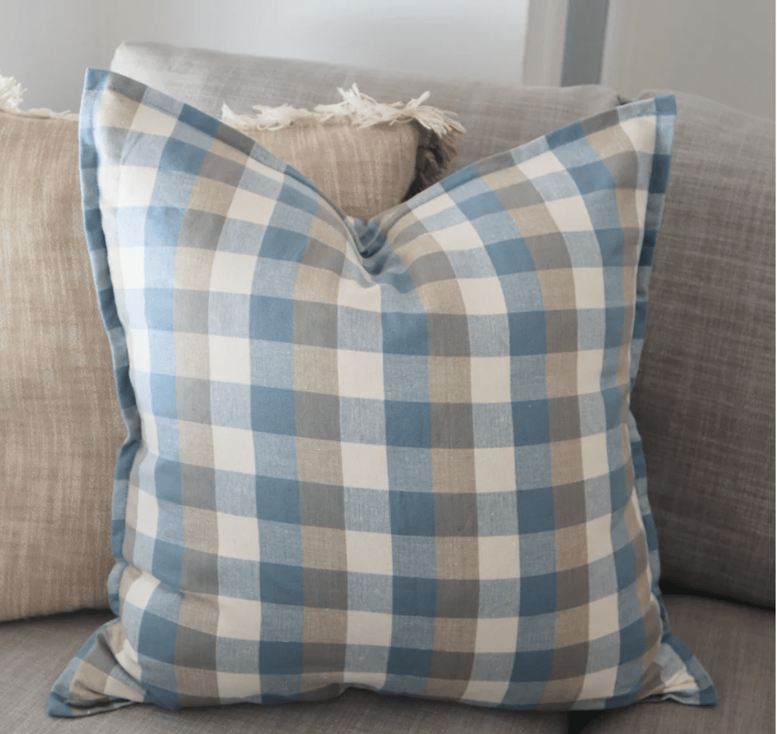 “Elevate your home’s comfort and elegance with the Raine & Humble Double Weave Cushion. This exquisite cushion is thoughtfully crafted from eco-conscious recycled fabric, featuring a tastefully woven check pattern in timeless taupe, crisp ivory, and serene Blue Haze colors. Measuring a generous 50 x 50 cm and adorned with a stitched border, it effortlessly enhances any room’s decor.