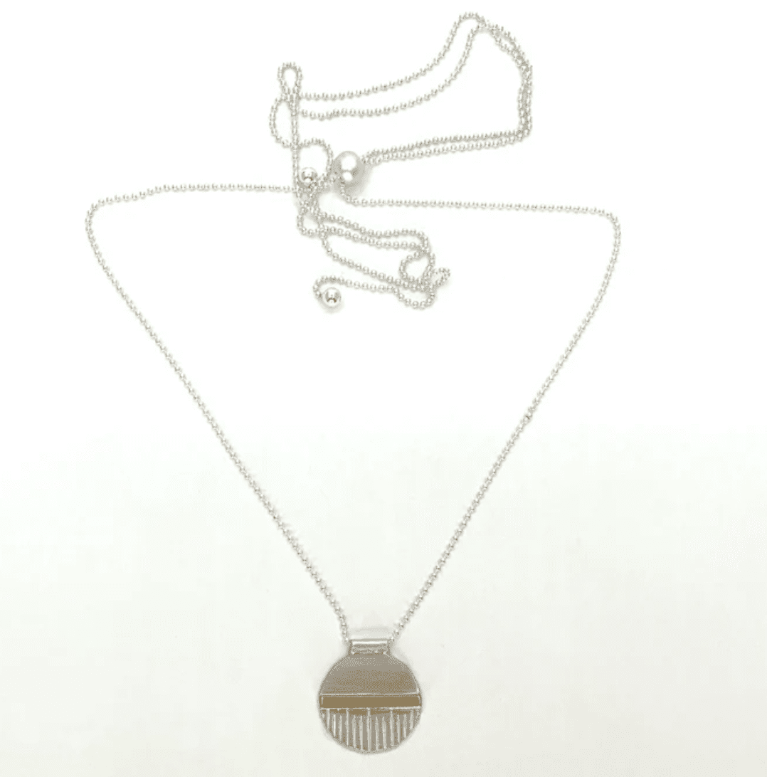 Meticulously hand crafted, it hangs from a small ‘tube’ connector on a 66cm silver chain that can be adjusted in length with its rubber inner slider bead.