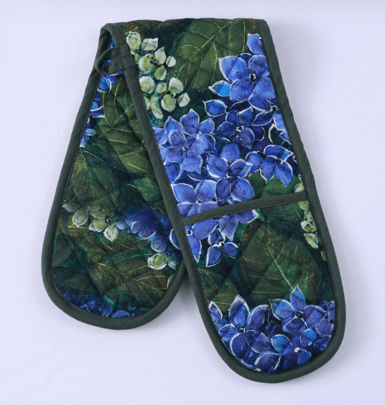Hand painted by NZ designer Judy Curnow, Matilda is inspired by nature featuring tones of delf blue and vibrant greens. Use when handling warm trays, tins or pans around the kitchen.